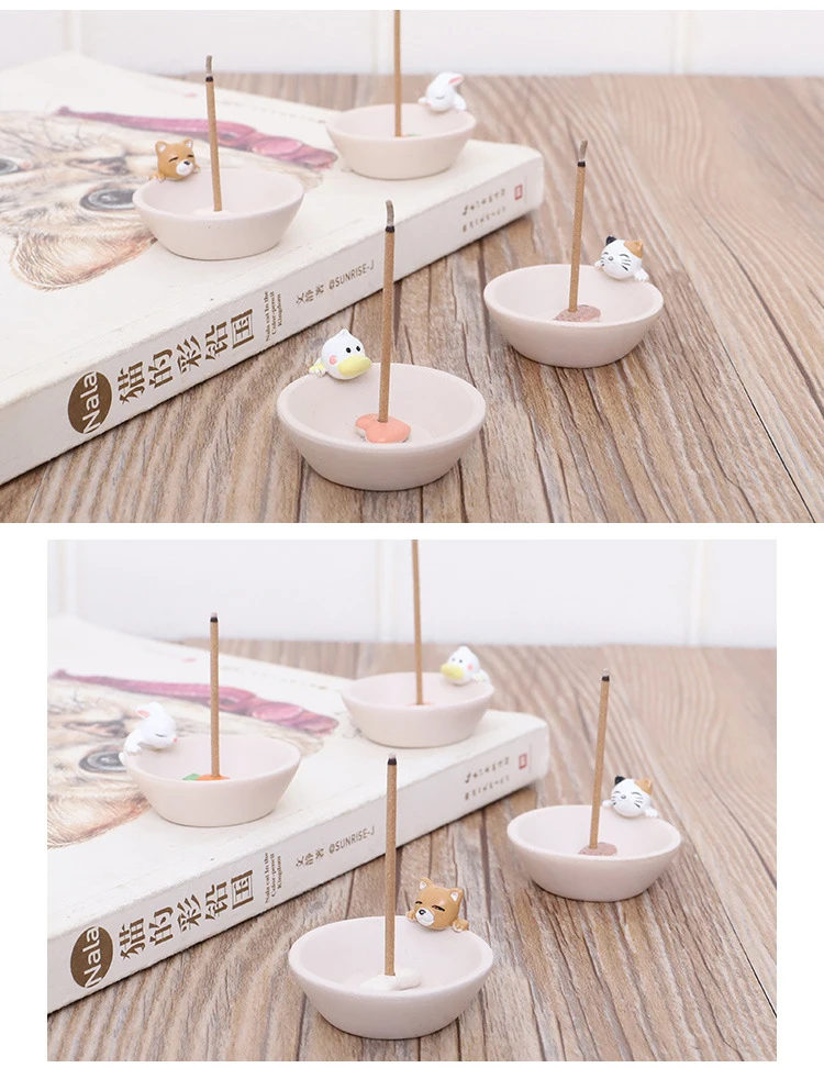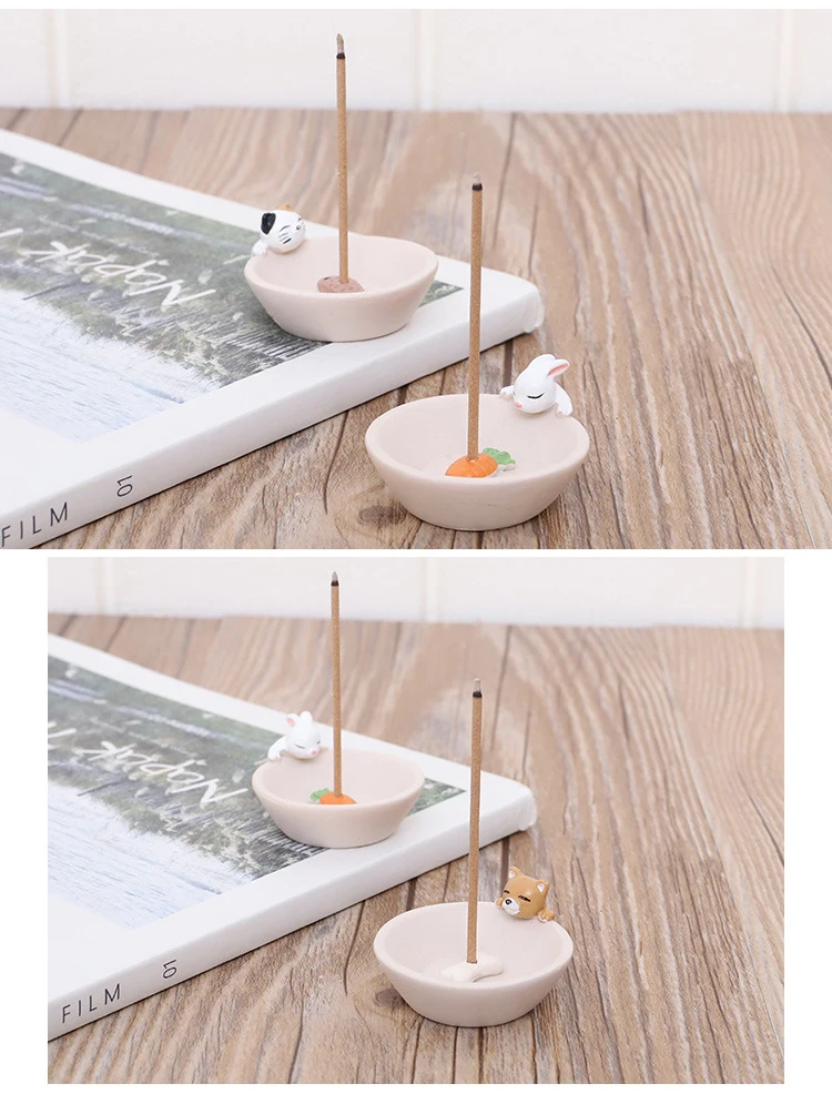 1Pc Incense Stick Burner Ash Catcher Incense Holder Aromatherapy Plate Resin Rabbit Puppy Ornament for Home Spa Decoration